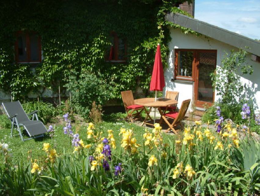 Die Ferienwohnung hat einen direkten Zugang zum eigenen Garten und Sitzplätze im Grünen. Geheizt wird mit einem eigenem Grundkachelofen, in dem auch Brot und Pizza gebacken werden kann.