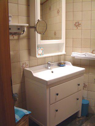 Pflegen. Badezimmer mit Dusche, Waschtisch, WC, Föhn. Bade- und Handtücher liegen bereit. Dampfbügeleisen und Bügelbrett sind vorhanden, ebenso sämtliche Putzmittel. Die Waschmaschine und der Wäschetrockner können nach Absprache im Haupthaus mitbenutzt werden.