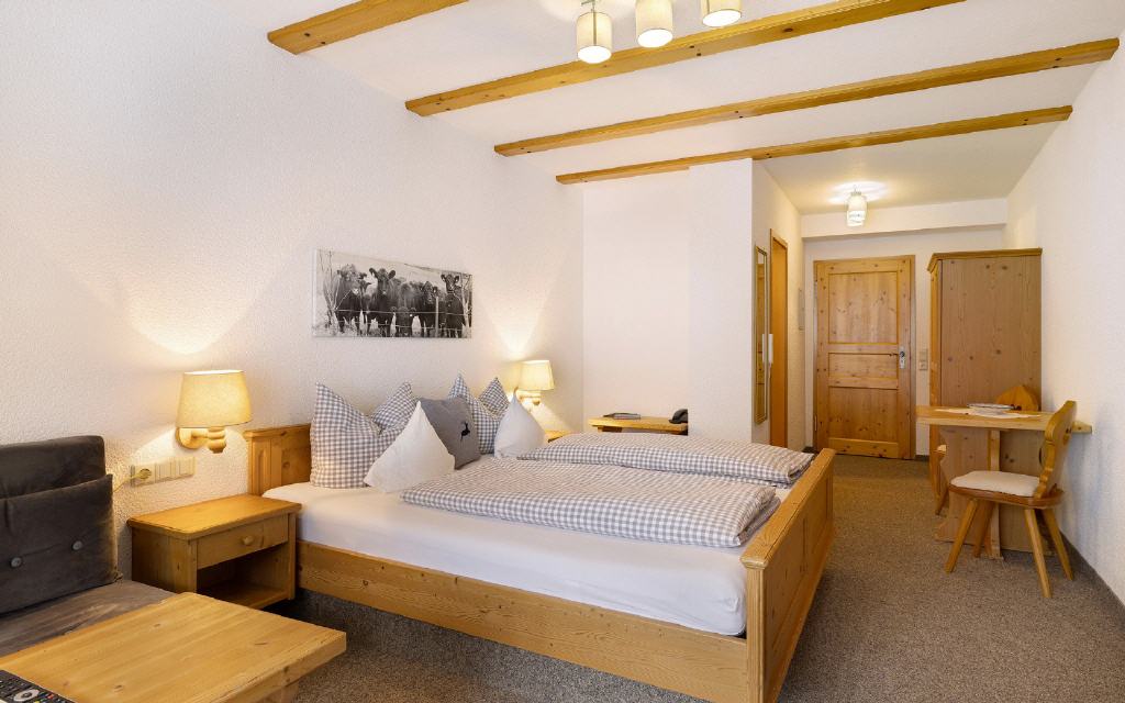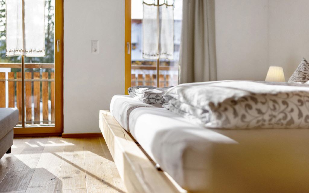 Doppelzimmer Leibgeding: Unsere Doppelzimmer sind mit Dusche, WC, Telfon, TV und Balkon mit herrlichem Ausblick ausgestattet. Größe ca. 20 qm. Preis ab 52 Euro (pro Nacht ab 4 Übernachtungen).