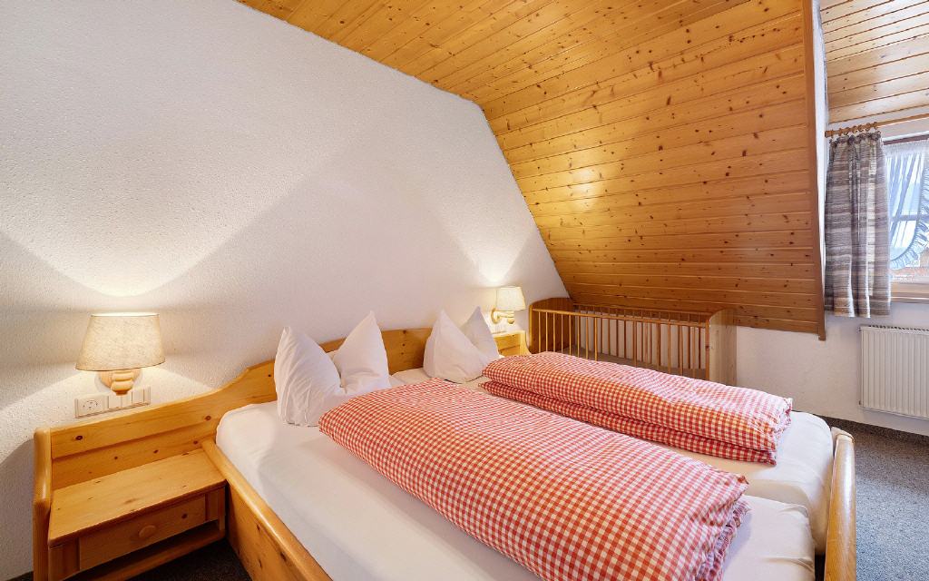 Ferienwohnung Vogtsmichelhofstuben: 2 separate Schlafräume mit Doppelbetten, Wohn-Essraum mit Balkon, Küche und Badezimmer. Größe ca. 110 qm. Preis 115 Euro (pro Nacht ab 4 Übernachtungen).