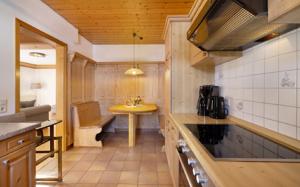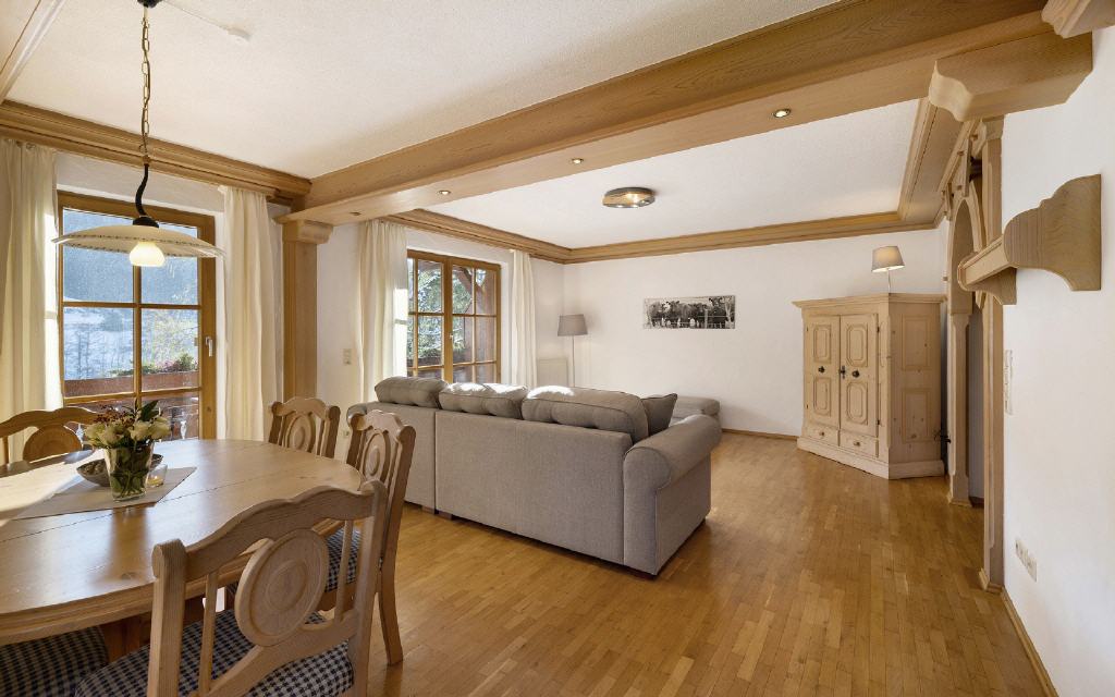 Ferienwohnung Leibgeding: Diese Ferienwohnung hat 2 separate Schlafräume mit je einem Doppelbett, einen Wohn-Essraum mit Küchenzeile und Balkon sowie ein Badezimmer. Größe ca. 60 qm. Preis ab 105 Euro (pro Nacht ab 4 Übernachtungen).
