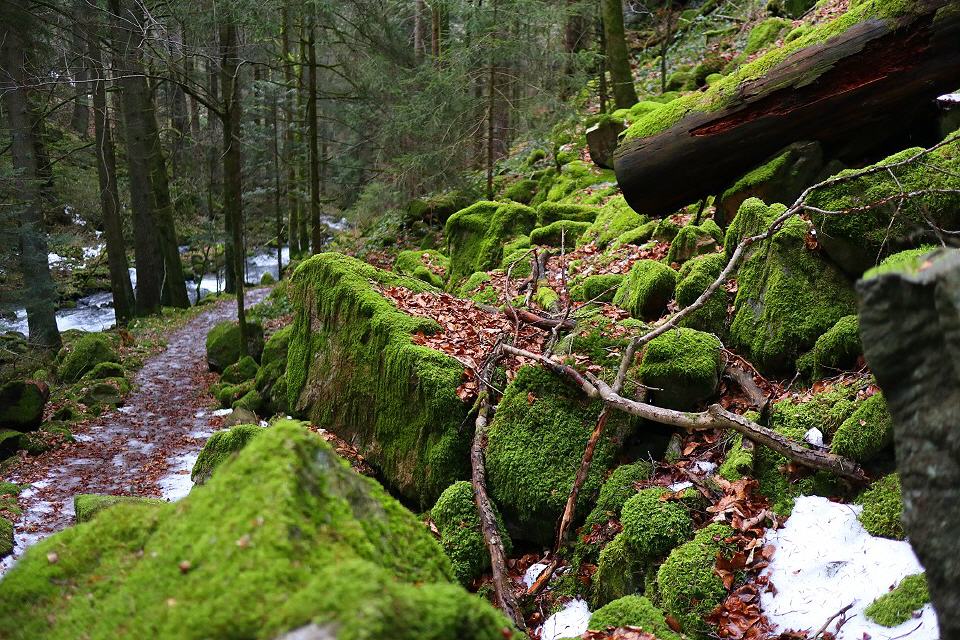 Die wenig bekannte Teichschlucht zwischen Gütenbach und Simonswald hat es ganz schön in sich. Sie ist wild und bietet spektakuläre Abschnitte. Wer sie durchschreitet (oder besser durch klettert), sollte in jedem Fall trittsicher sein und über eine gute Kondition verfügen. Erreichbar ist die Teichschlucht am besten über den Wanderweg ab Gütenbach (Wanderparkplatz Felsenkeller). Von dort geht es auf einer Fahrstraße etwa einen Kilometer bergab bis zum Ende der Sackgasse.