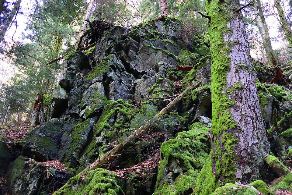 Die Teichschlucht ist Teil einer der schroffsten Tallandschaften der deutschen Mittelgebirge. Das Tal wurde während vergangener Eiszeiten durch Gletscher überformt und ist stark verblockt.