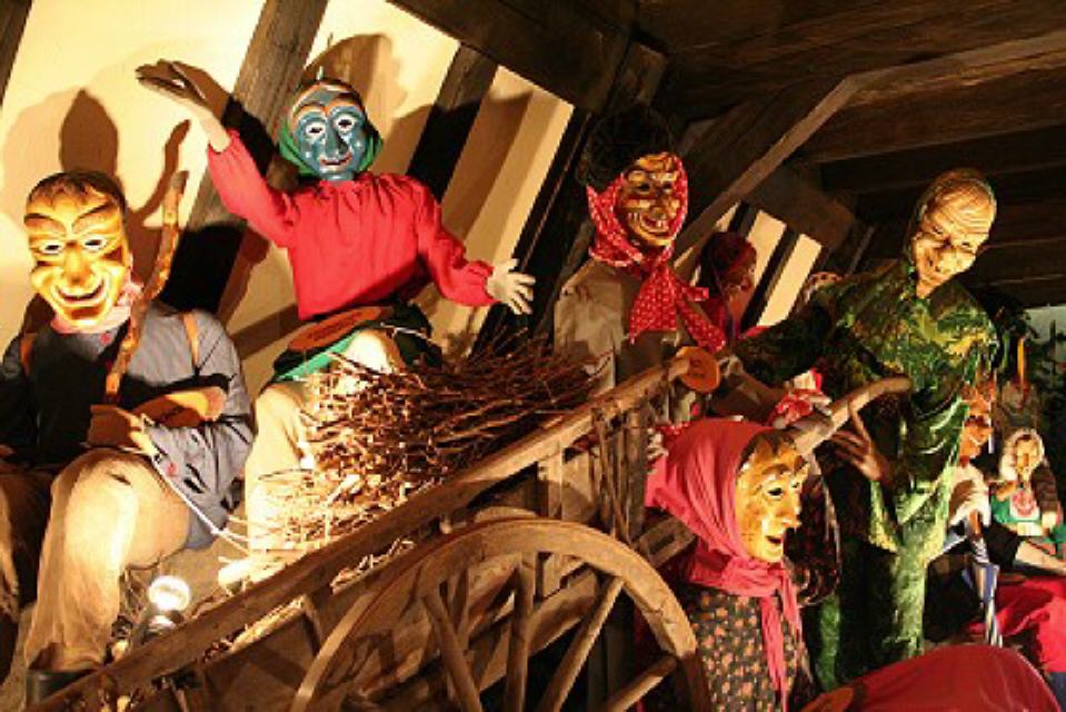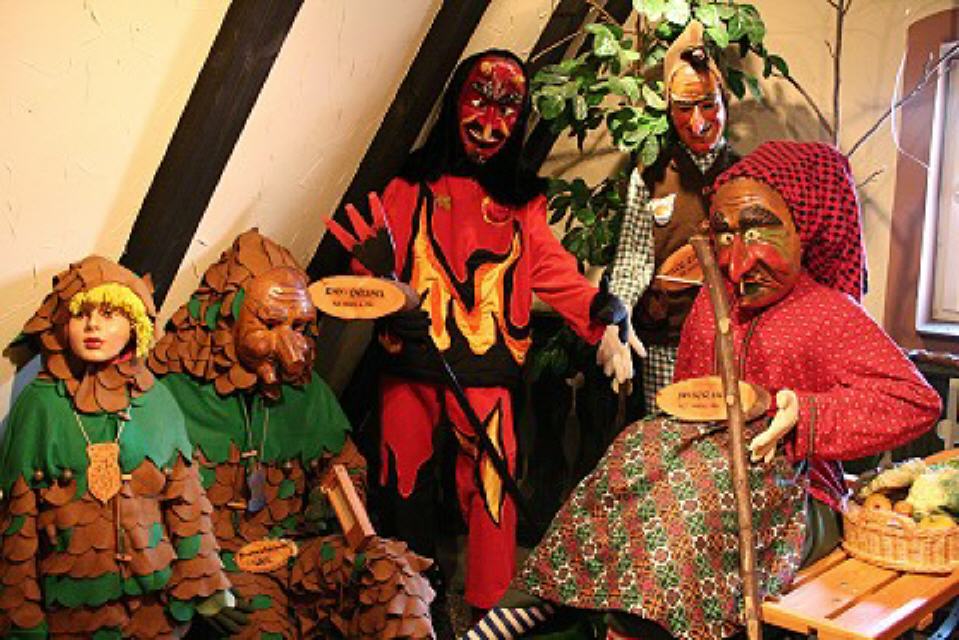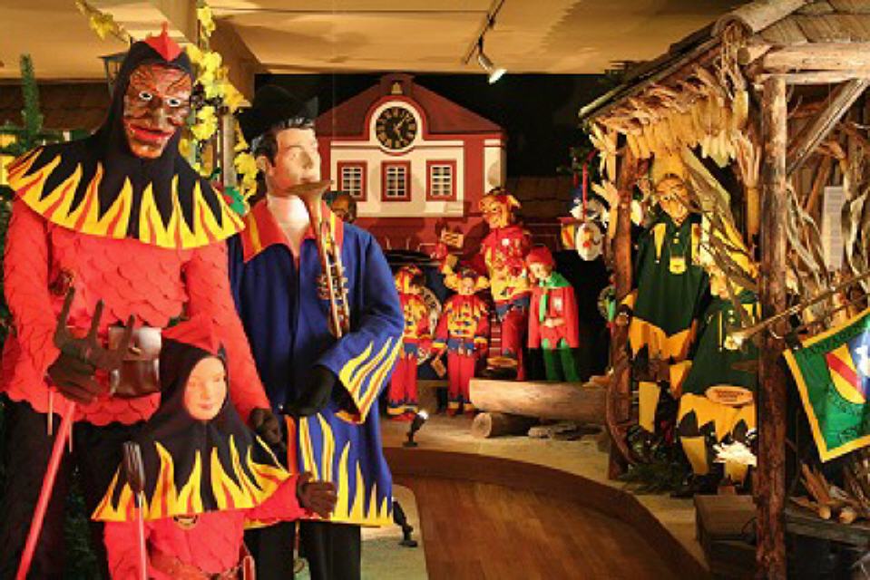 Im dritten Obergeschoss findet man die Vogtei Dreiländereck aus unserer Grenzregion zur Schweiz und dem Elsass. Ein bisschen erinnert man sich beim Betrachten an die Basler Fasnacht, wenn man die “Waggis” oder andere Narren aus dieser Landschaft sieht.
