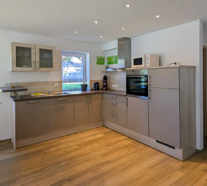 • Essbereich, offene L-Küche mit Cerankochfeld und Spülmaschine sowie Kühl-Gefrierkombination, Backofen, Mikrowelle, Kaffeemaschine uvm.