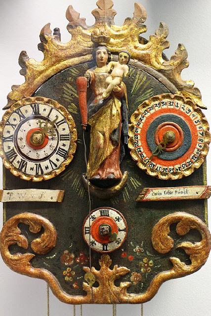 Anlässlich des Jubiläums “150 Jahre Uhrenmuseum Furtwangen” wurde im Foyer eine Ausstellungswand rekonstruiert, wie sie im früheren Museumsbau um 1935 zu sehen war. Sie zeigt sieben historische Uhren mit kostbaren, teils reich vergoldeten und verzierten Gehäusen. Ergänzt wurde diese Wand um eine letztjährige Neuerwerbung des “Vereins zur Förderung des Deutschen Uhrenmuseums”: Das Einzelstück einer Konsolenuhr im Stil des Neo-Rokoko wurde um 1900 von der Großherzoglich Badischen Schnitzereischule gefertigt.