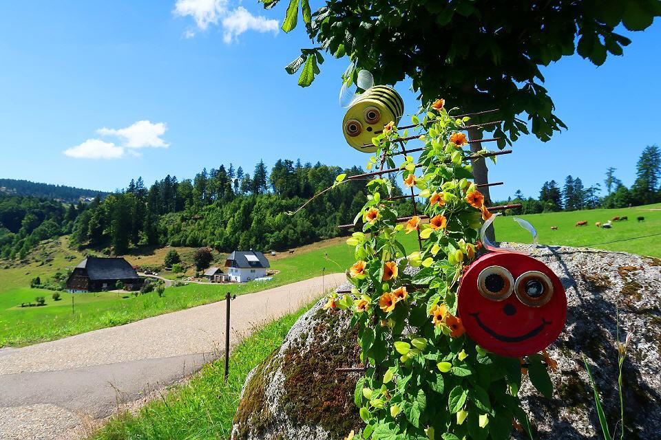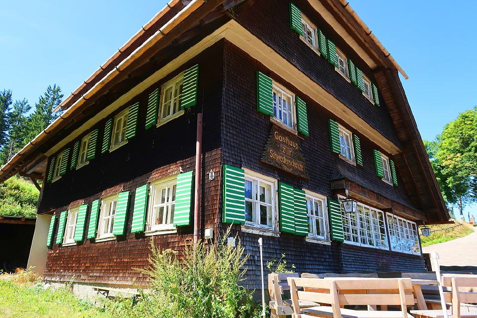 Direkt in der Nähe des Sendemastes liegt eine Schanzenanlage aus dem spanischen Erbfolgekrieg (1701 bis 1714), die aber nie militärische Bedeutung erlangte. Allerdings verhalf sie dem Gasthaus zur Schwendenschanze zu ihrem Namen. Entlang des Zauns des Sendemastes durch den ehemaligen Graben der Schanze führt der Weg zu einem Aussichtspunkt, von dem aus man bei schönem Wetter über das Rheintal bis in die Vogesen schauen kann. Nach einem kurzen Wegstück und weiteren beeindruckenden Ausblicken in Richtung Nordschwarzwald und Schwäbischer Alb lockt die urige Einkehr in der "Schwedenschanze", in der wir uns bei einem guten Vesper erholen können. Nun geht es über offene Flächen bergab vorbei am beeindruckenden Schänzlehof, dem höchstgelegenen Bauernhof im mittleren Schwarzwald.
