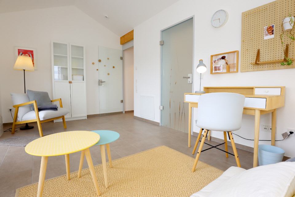 Wohnbereich: Kleiderbügel, Spiele, Kleiderschrank, TV Digital,Hifi-Anlage, Bügeleisen, Schreibtisch, Schlafsofa, Esstisch, CD/DVDs, Bügelbrett
