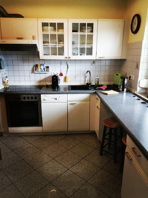 - Einbauküche mit Kaffeemaschine, Eierkocher, Tassimo, Spülmaschine, Mikrowelle, Toaster, Wasserkocher.