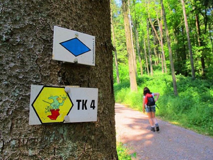 Vom Solfelsen folgen Sie nach einer Pause ein kurzes Stück dem Querweg bis zur Verzweigung beim Spatzenhof. Dort geht es links weiter auf einem Forstweg, der sich im Wald zur Rodungsinsel Günnenbach hinabsenkt. Auch von dort aus bietet sich ein schöner Blick hinunter ins Tal, zum Dinkelberg und den Südschwarzwald. Schließlich ist es nicht mehr weit zum Bergsee. Dort können Sie noch eine Bootsfahrt unternehmen und sich erfrischen, bevor es durch die Allee im Kurgebiet zurück zum Bahnhof geht.
