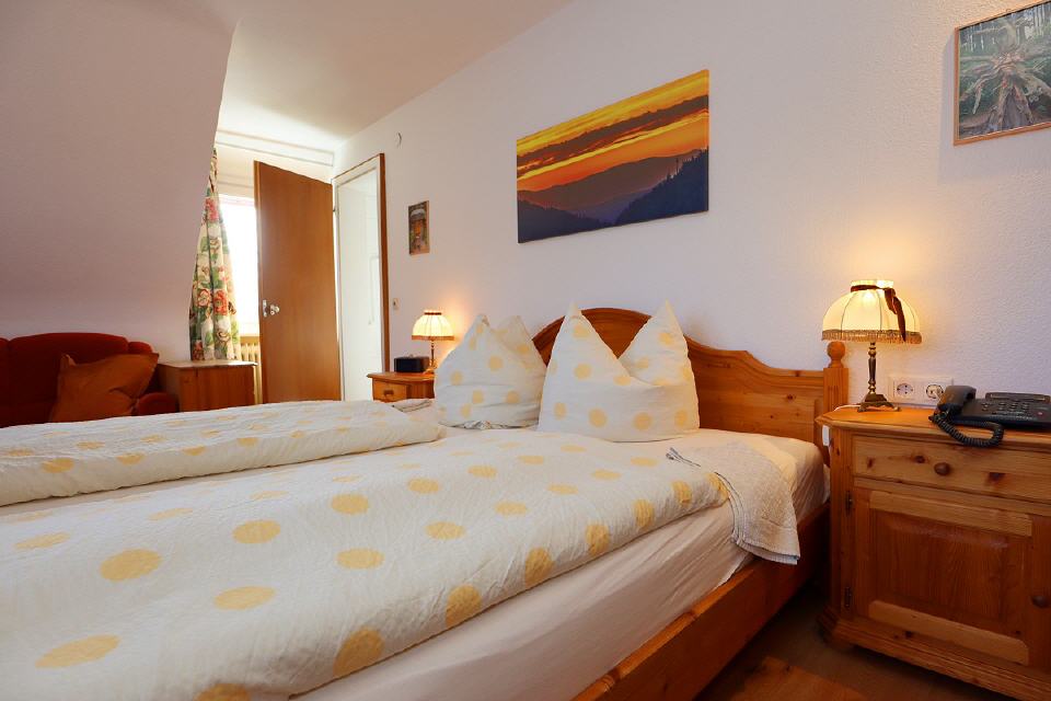 13 gemütlich, individuell eingerichtete Zimmer mit Sitzecke, Kabel-TV, Radiowecker, Dusche/WC, Minibar und WLAN. Zimmer größtenteils mit Balkon oder Privat-Terrasse. Von unseren Balkon- oder Terrassenzimmern genießen Sie eine wunderschöne Aussicht mit Blick auf Wiesen und Wälder.