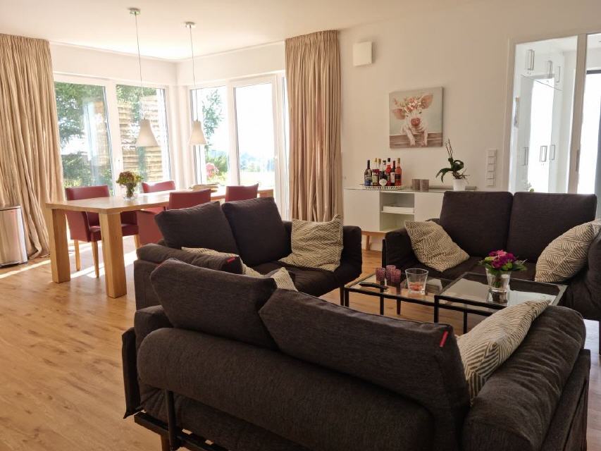 Das luxuriös ausgestattete, gemütliche 74 qm-Appartement (zertifiziert mit 5 *****) in Kappel bei Lenzkirch befindet sich in ruhiger Wohnlage im Erdgeschoss eines neuen Einfamilienhauses mit separatem Eingang. Es stehen ein Schlafraum, ein Wohnraum, ein großzügiger Essbereich mit integrierter Luxus-Küche, ein Badezimmer mit Whirl-Badewanne und Raindance-Dusche sowie eine große Gartenterrasse mit privater Gartennutzung zur Verfügung. Vom Wohn-/ Essbereich und von der Gartenterrasse genießen Sie einen fantastischen Weitblick über Wiesen und Wälder bis zu den Alpen. Das Check-in erfolgt bei uns kontaktlos. Sie finden Ihre Schlüssel in einem Schlüssel-Safe, für den Sie von uns zeitnah vor der Anreise den Zugangscode erhalten. Ihren Pkw stellen Sie ganz bequem und sicher direkt vor Ihrem Apartment auf einem Privatparkplatz ab, den nur Sie nutzen. Hier wohnen Sie komfortabel, verkehrsgünstig und äußerst günstig.