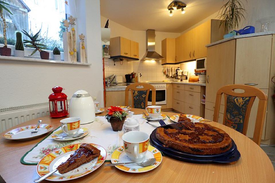 Die Ferienwohnung bietet auf 70 qm genügend Platz für Ihre Familie; sie verfügt über einen eigenen Eingang. Das Schlafzimmer ist modern möbeliert. Die Betten verfügen über einen am Kopf- und Fußteil höhenverstellbaren Lattenrost. Kinderbett ist vorhanden. Der Wohnbereich ist sehr gemütlich ausgestattet und bietet: Sat-TV, Radio, Sitzgruppe, Schlafsofa und eine Essecke mit Stühlen. Modern, bestens ausgestattet und zweckmäßig ist auch die Kücheneinrichtung mit Geschirrspühler, Mikrowelle, Ceran-Kochfeld, Backofen und Grill.