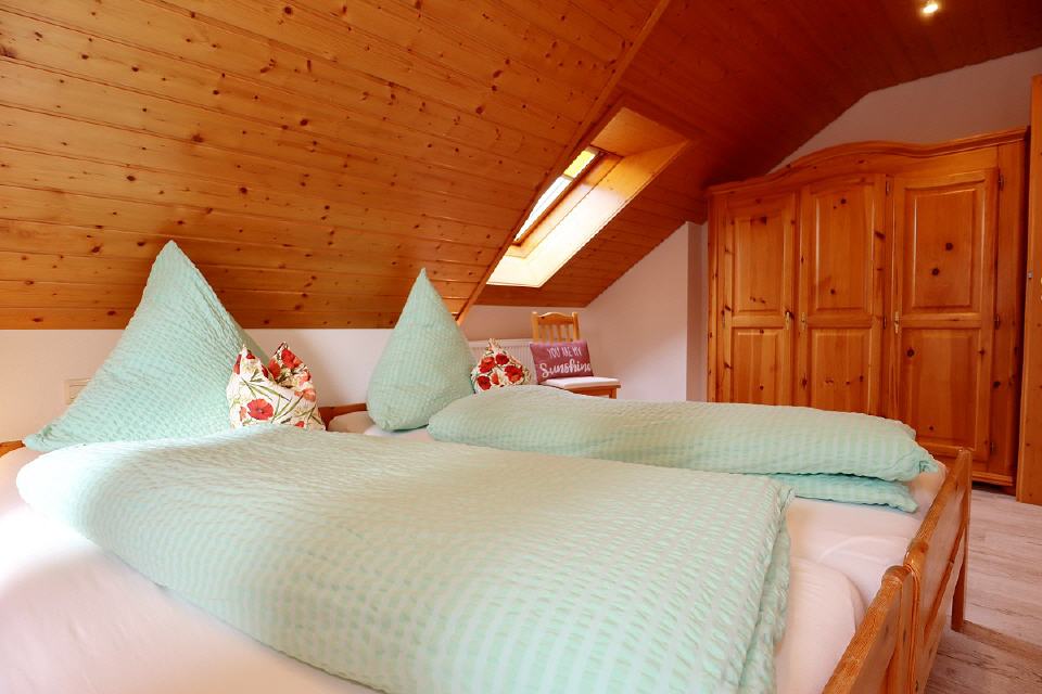 - Im 2. Obergeschoss ist ein weiteres Zimmer mit drei Betten.