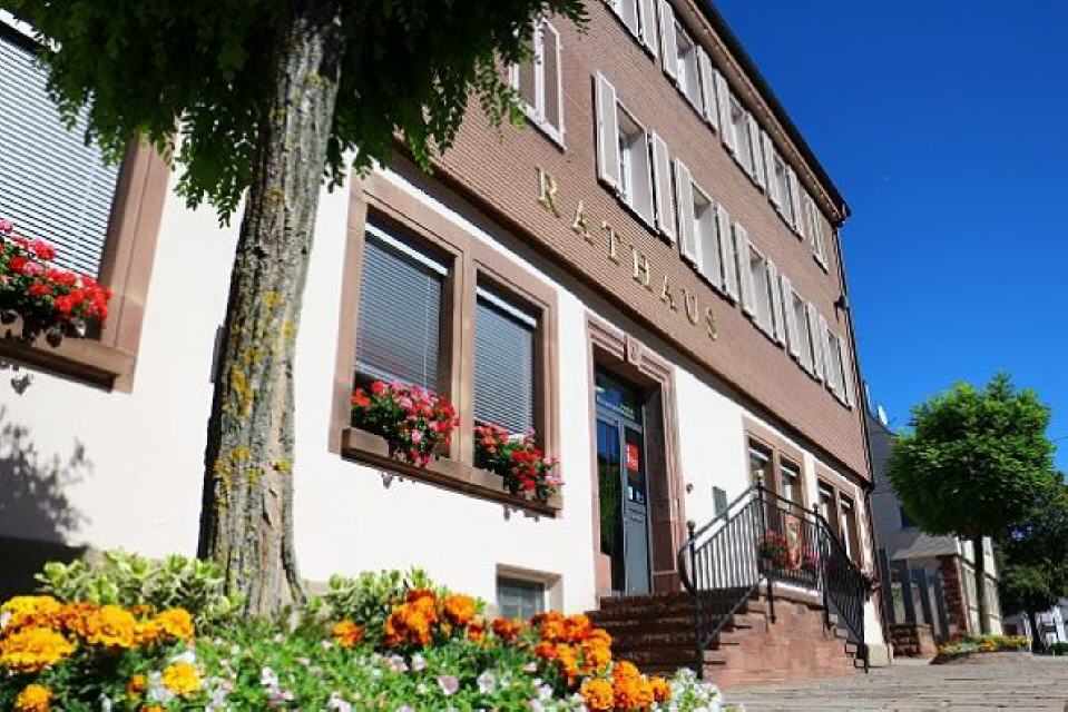 Mittelpunkt des Marktplatzes war das Rathaus; 1742 datiert mit dem Standort: “Mitten im Flecken zwischen der Allmand und Hans Rathen Haus gelegen”. 1785 wurde dieses baufällige Haus abgebrochen und an gleicher Stelle mit Steinen der Burg Vörbach neu erbaut. Doch schon 1798 fiel dieses neue Rathaus der großen Brandkatastrophe zum Opfer. Erst am 22. Dezember 1822 wurde der Grundstein für das neue Rathaus an gleicher Stelle in feierlicher Form gelegt, bei dem der Ochsenwirt Stockinger einen “großen Weinumsatz gehabet habe” und alle Beteiligten ein “Tüchlein” als Geschenk bekamen. Dieses neue “herrschaftliche Rathaus” inmitten des Marktplatzes verkaufte die Gemeinde im Jahr 1841 an den Apotheker Geeb (Zeeb?) von Dornstetten, der darin eine Filialapotheke einrichtete. Noch im gleichen Jahr kaufte die Gemeinde das Gasthaus “Hirsch” (heute Haus des Gastes) und baute es zu einem Schul- und Rathaus und einer Lehrerwohnung um. 72 Jahre später waren auch die Räumlichkeiten in diesem Haus zu klein. 1911 beschloss die Verwaltung, das Rathaus in den Gasthof “Ochsen” zu verlegen, den die Gemeinde 1871 von dem Ochsenwirt Gneiting gekauft hatte. In dem Haus befand sich noch eine Wirtschaft, eine Brauerei, eine Scheuer mit Stallungen. Die Kosten des Umbaus wurden durch einen außerordentlichen Holzhieb finanziert. Beim Einzug 1912 hatte die Gemeinde etwa 1400 Einwohner.