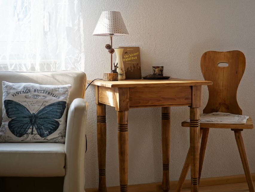 Diese wunderschöne Wohnung liegt als einzige Wohneinheit im kleinen „Leibgeding-Haus“ der Alten Schmiede. Die 76 qm große Wohnung wurde aufwändig restauriert und mit viel Liebe zum Detail eingerichtet. Die Wohnung liegt im 1. OG des kleinen 1826 erbauten Häuschen neben dem Fachwerkhaus und diente als Alterssitz der Schmiede.